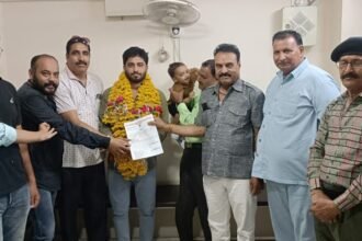 पदाधिकारियों ने पुष्पमाला पहना कर किया स्वागत