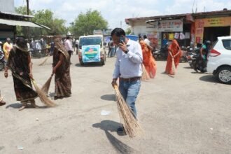 शहरी स्वच्छता संकल्प महा अभियान के अंतर्गत जनप्रतिनिधियों ने बस स्टैंड पर लगाई झाडु