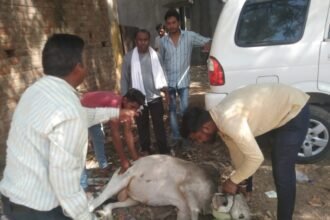 आवारा मवेशी का टूटा पैर, चिकित्सकों, समाजसेवियों की मदद से किया गया उपचार, देखिए वीडियो