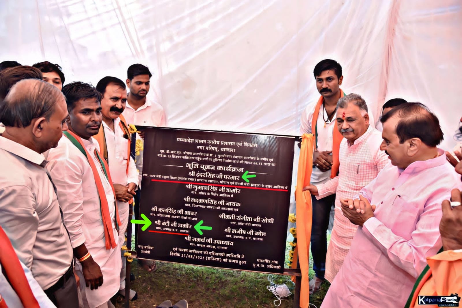 बुधवार को आयोजित भूमि पूजन के अवसर पर अजजा मोर्चा प्रदेश अध्यक्ष कलसिंह भाभर, जिला उपाध्यक्षा सुनीता नटवर पंवार, नगर परिषद अध्यक्ष लक्ष्मी सुनील पणदा, भाजपा वरिष्ठ नेता अनिल भंसाली, किशोर आचार्य, मंडल अध्यक्ष व पार्षद समर्थ उपाध्याय, पार्षद धापू वसुनिया, माया सचिन सोलंकी, अखिल जैन, संदीप डामोर, पार्षद पति सचिन सोलंकी, आशीष सोनी, भाजपा मंडल महामंत्री सुनील पणदा, उपाध्यक्ष राकेश सोनी, नटवर पंवार, महिला मोर्चा अध्यक्ष आरती सिसोदिया, पिछड़ा मोर्चा अध्यक्ष मुकेश प्रजापत, अजा मोर्चा अध्यक्ष गोलू जी फत्रोड, पिछड़ा मोर्चा महामंत्री दीपक राठौड़, भाजपा सोशल मीडिया मंडल संयोजक आशुतोष राठौड़, योगेश प्रजापत , आनंद जी राठौड़ , मनीष गरवाल , गोलू जी, बबलू जी मनीष वाघेला, इंजिनियर पप्पू बारिया, यशदीप अरोरा, दरोगा टिटिया, स्टोर हेड विजय गिरी आदि मोजूद थे।