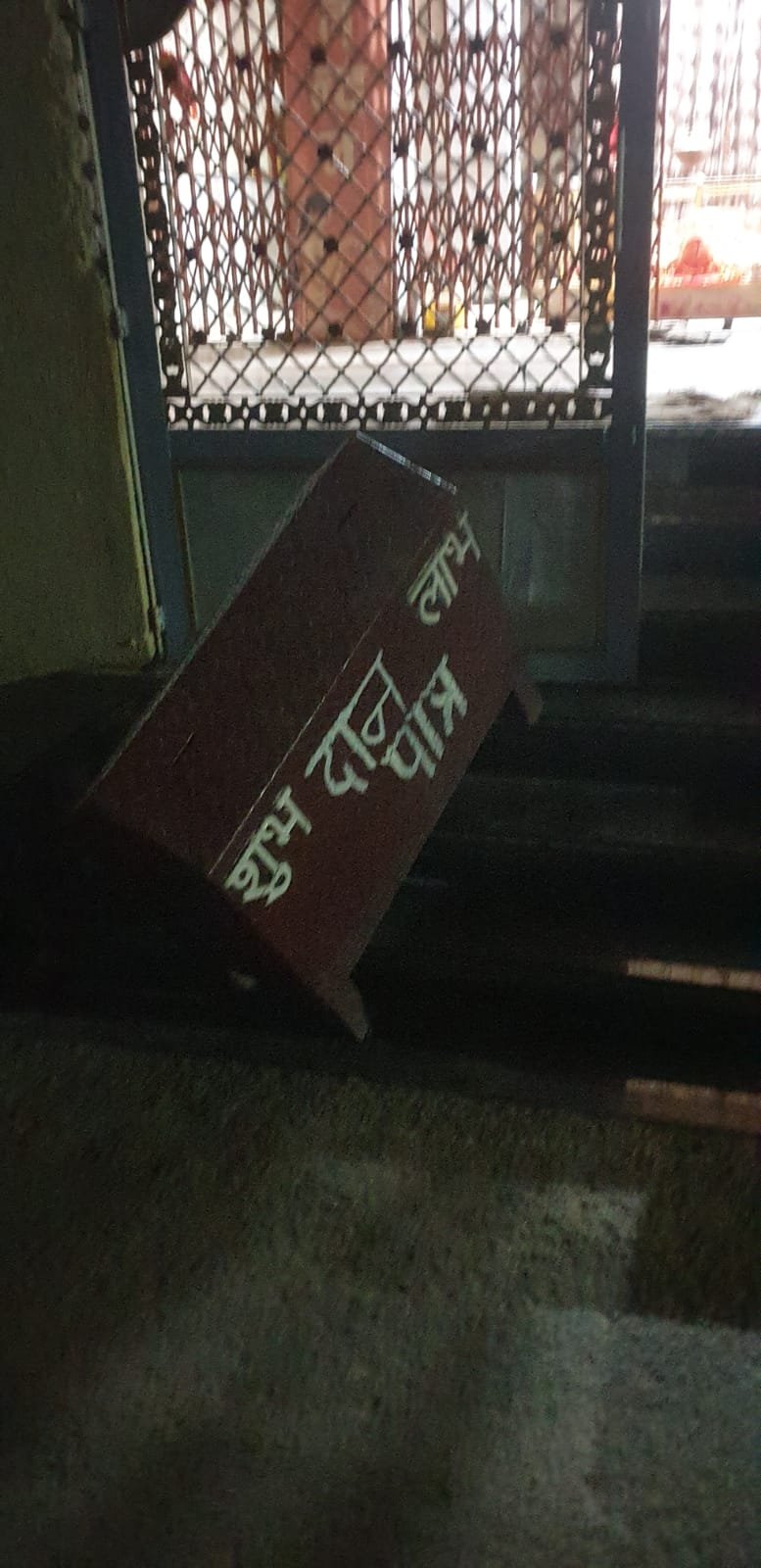 घटना की सूचना आसपास के रहवासियों द्वारा रात में ही समाज के युवक सचिन प्रजापति को दी गई। रात में ही युवक सचिन प्रजापति मंदिर परिसर पहुंचे और सामानों को रखरखाव कर मुख्य द्वार पर फिर से ताला लगाया।