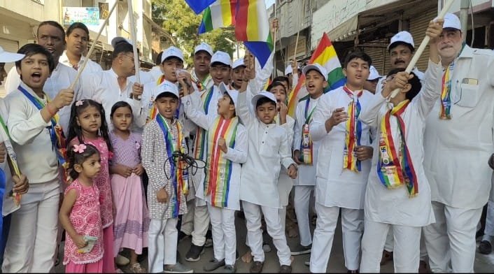 थांदला। सकल जैन समाज द्वारा 2563वीं महावीर जयंती उत्साह के साथ मनाई गई। इस अवसर पर नगर में विशाल शोभायात्रा निकाली गई। शोभायात्रा का नेतृत्व श्वेतांबर मूर्तिपूजक संघ, वर्धमान स्थानकवासी जैन समाज, दिगंबर जैन समाज और तेरापंथ समाज के पदाधिकारी कर रहे थे। वही महावीर जयंती पर्व पर जैन सोशल ग्रुप द्वारा नगर के मुख्य बस स्टैंड पर प्याऊ का शुभारंभ भी किया गया।