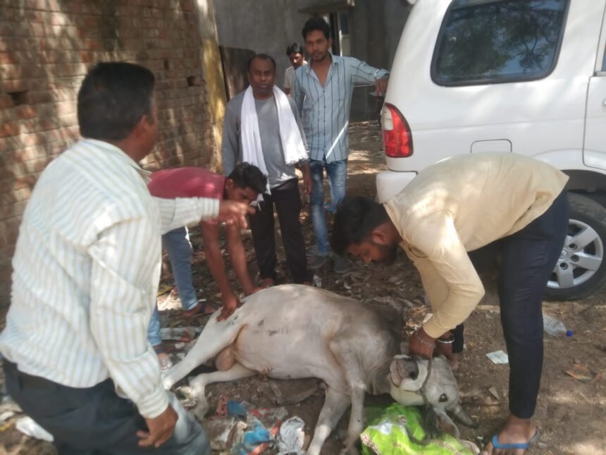 नगर के वार्ड क्रमांक 15 में एक आवारा मवेशी के टूटे पैर को जोड़ने के लिए पार्षद, समाजसेवी और पशु विभाग आगे आया।