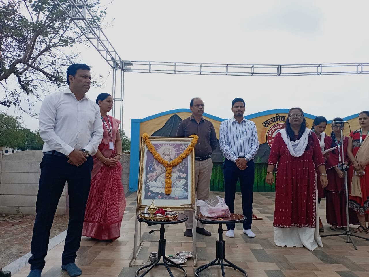 नवीन विद्यार्थियों का स्कूल स्टाफ द्वारा तिलक लगाकर स्वागत किया। शैक्षणिक सत्र के प्रथम दिवस पर संस्था प्रमुख प्रदीप गादिया, हर्ष गादिया, प्राचार्य प्रमोद नायर, संध्या नायर द्वारा माँ सरस्वती के चित्र पर माल्यार्पण एवं दीप प्रज्वलीत कर शुभांरभ किया गया। इस अवसर पर स्टॉफ सदस्यों द्वारा माँ सरस्वती वंदना की प्रस्तुती दी गई।
