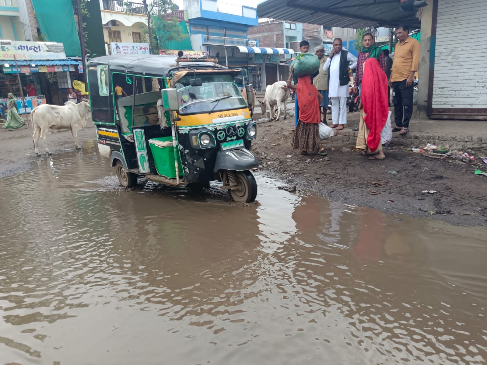 पुरानी मंडी प्रांगण में लगने वाली थोक सब्जी मंडी के प्रवेश द्वार पर बरसात के दिनों में पानी भर जाता है। बरसात अभी अपने शुरुआती दिनों में ही है। लेकिन इसके प्रवेश मार्ग पर काफी पानी जमा हो चुका है। जिससे किसानों और व्यापारियों को आने जाने में परेशानियों का सामना करना पड़ता है। वही पानी भरा रहने से संभावित दुर्घटना भी हो सकती है। प्रशासन को इस ओर ध्यान देकर पानी निकासी की पर्याप्त व्यवस्था करनी चाहिए।
