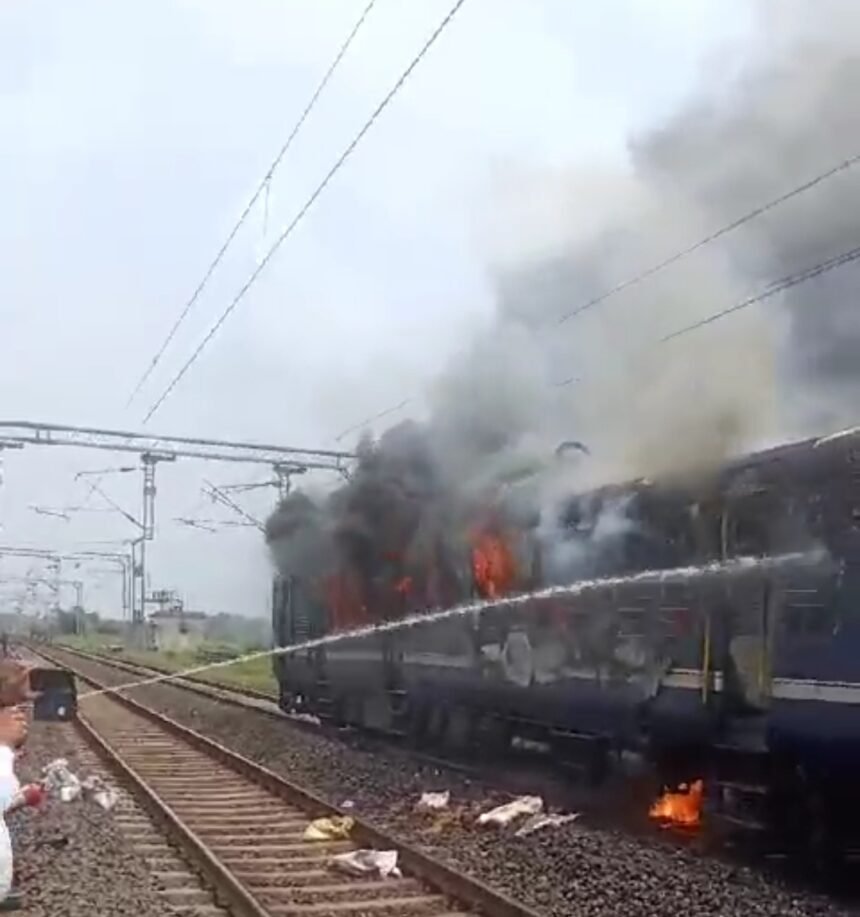 मेमू पैसेंजर के कोच में लगी आग, देखे वीडियो