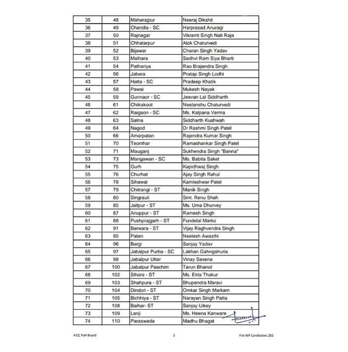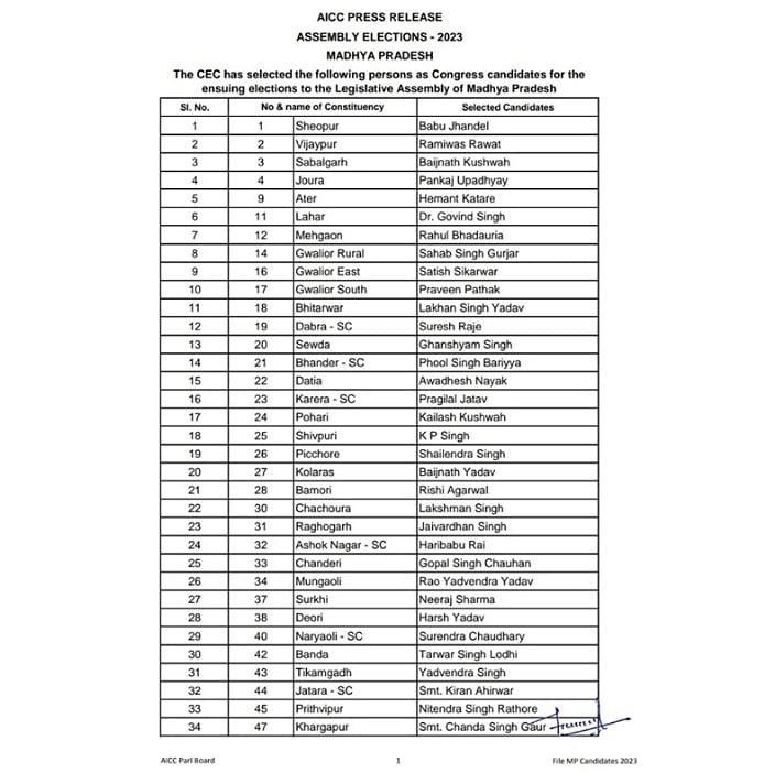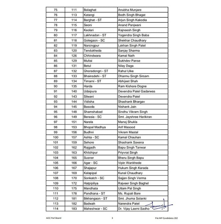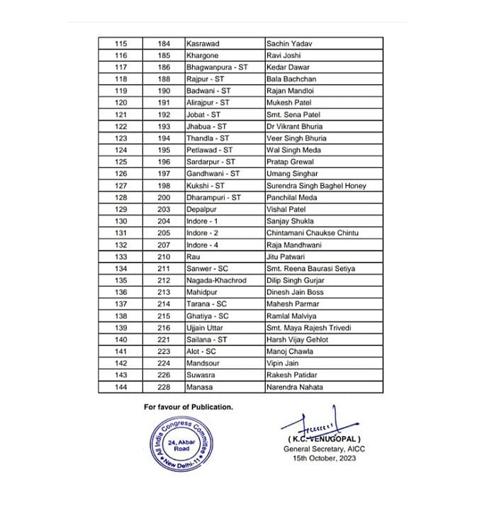थांदला। शारदीय नवरात्रि के पहले दिन कांग्रेस ने मध्य प्रदेश के विधानसभा चुनाव को लेकर उम्मीदवारो की लिस्ट जारी कर दी है।