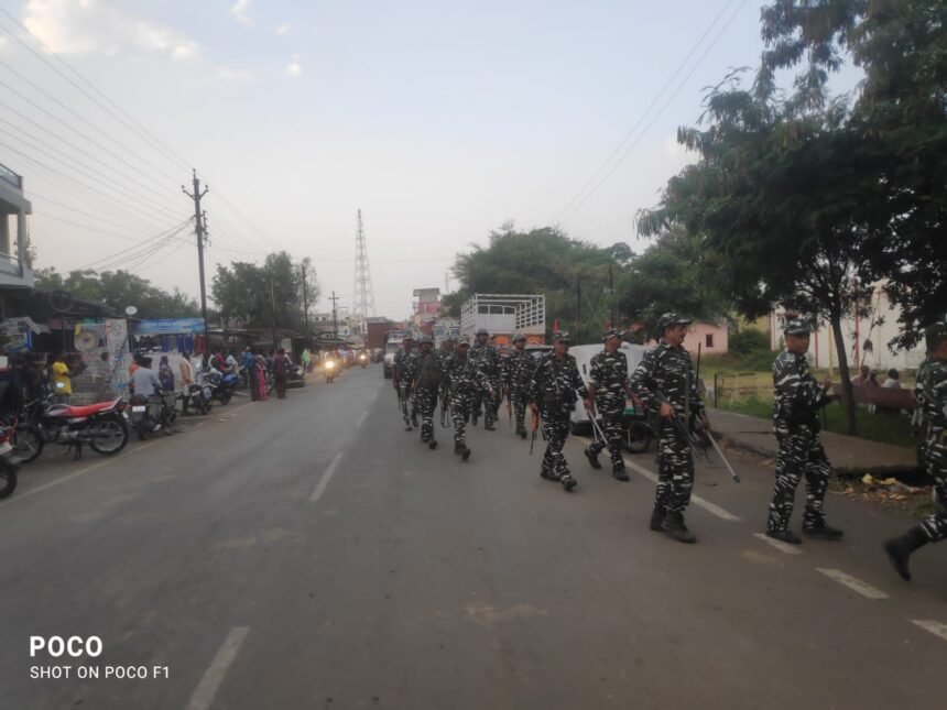शुक्रवार को पुलिस अधीक्षक अगम जैन के निर्देशन व अतिरिक्त पुलिस अधीक्षक प्रेमलाल कुर्वे में मार्गदर्शन में आगामी निर्वाचन-2023 को शान्तिपूर्ण कराने हेतु विधानसभा चुनाव और त्योहारों को ध्यान में रखते हुए क्षेत्र में शांति व्यवस्था बनाए रखने के लिए तथा आचार संहिता का पालन करने का संदेश लेकर तहसीलदार हुकूमसिंह निगवाल, टीआई राजूसिंह बघेल एवम चौकी प्रभारी अशोक बघेल के नेतृत्व में रतलाम रोड बामनिया से फ्लेग मार्च की शुरुआत हुई व कस्बे के मुख्य चौराहे से होकर पेटलावद रोड पर पुलिस चौकी पर समापन हुआ।