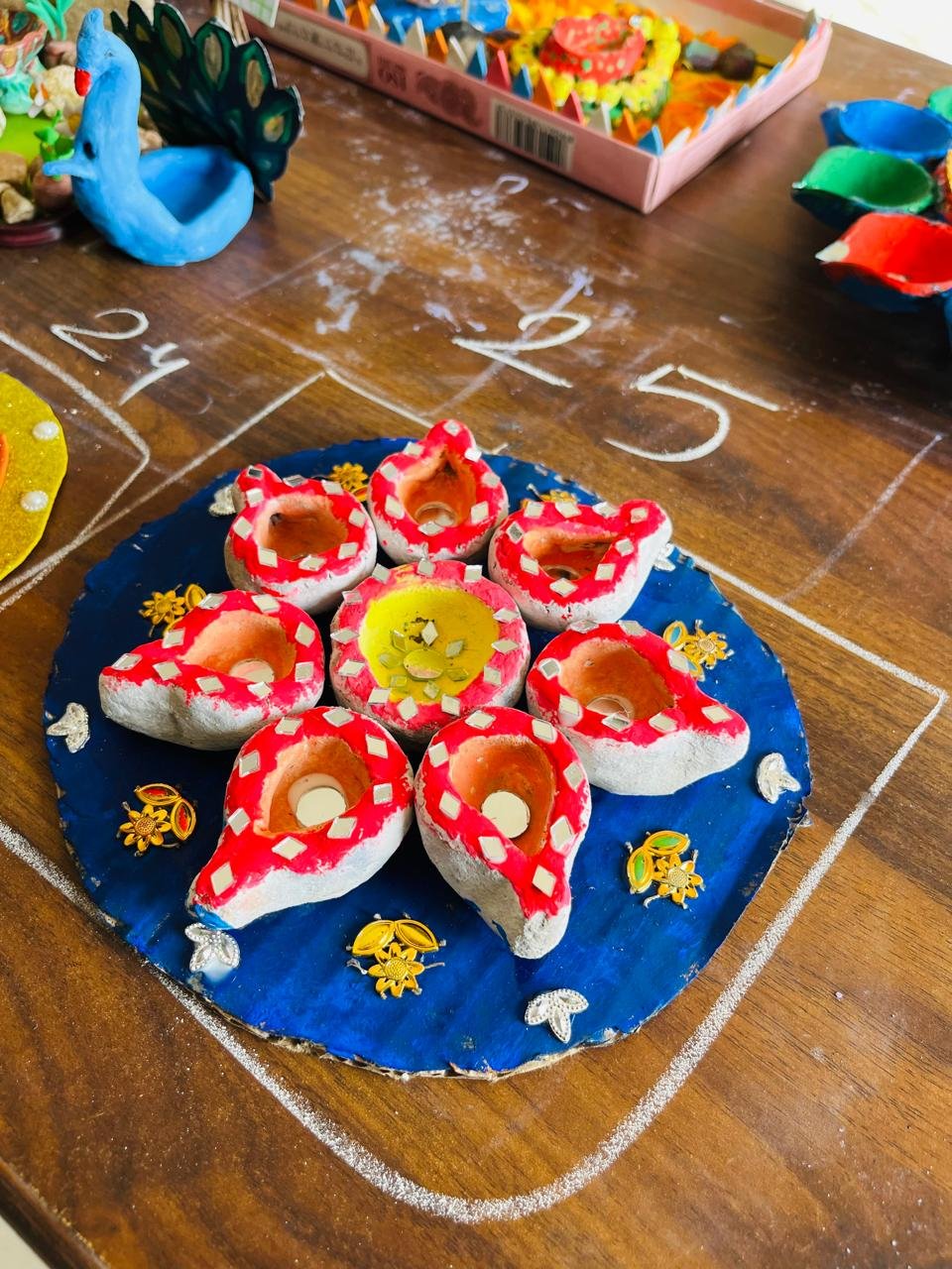 थांदला । शनिवार को अणु पब्लिक स्कूल में दीया बनाओ प्रतियोगिता आयोजित की गई। जिसमें विद्यार्थियों ने मिट्टी, गोबर और आटे से आकर्षक दीये बनाए। यह प्रतियोगिता न विद्यार्थियों की रचनात्मकता को प्रोत्साहित करने के साथ ही पर्यावरण के प्रति जागरूकता बढ़ाने के लिए भी रखी गई थी। विद्यार्थियों ने अपनी कला का प्रदर्शन करते हुए रंग.बिरंगे दीयों से विद्यालय को सजाया और रंगोली भी बनाई। दीयों की सुंदरता और रंगोली की रंगीन छटा ने पूरे परिसर को दीपावली के त्योहार की तरह रोशन कर दिया।