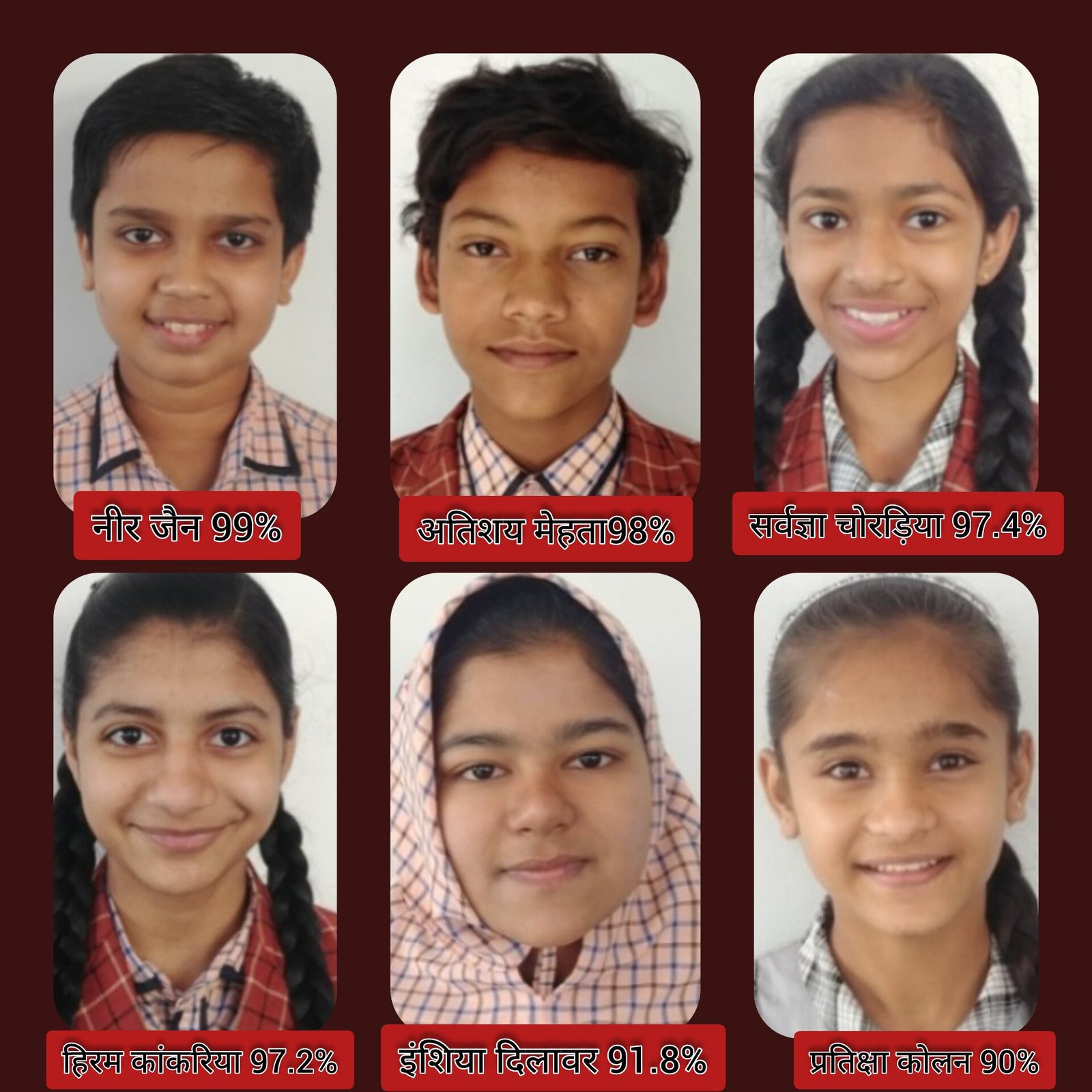 जानकारी देते हुए संस्था के प्राचार्य ललित कांकरिया ने बताया कि संस्कार पब्लिक स्कूल के कक्षा दसवीं के विद्यार्थी नीर मनोज जैन ने 99% बनाकर राज्य की प्रवीण्य सूची में छठवां स्थान प्राप्त किया है। वहीं संस्कार पब्लिक स्कूल के ही कक्षा दसवीं के विद्यार्थी अतिशय निलेश मेहता ने 98%, सर्वज्ञा महावीर चोरडिया ने 97.4%, हिरम आशीष कांकरिया ने 97.2% बनाकर जिले की प्रवीण्य सूची में क्रमशः प्रथम, द्वितीय और तृतीय स्थान प्राप्त किया है।