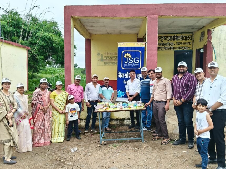जैन सोशल ग्रुप पेटलावद मैत्री के सदस्यों के द्वारा बच्चों को शिक्षण सामग्री एवं मिठाई का वितरण किया गया