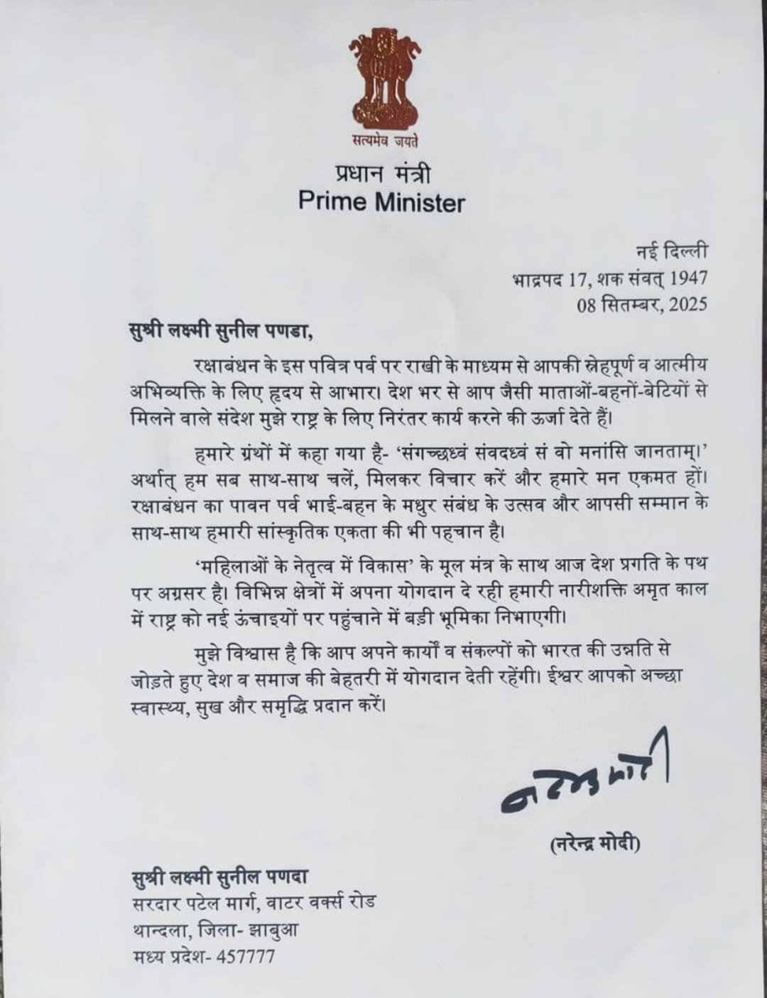 इसी अभियान की जानकारी देश के प्रधानमंत्री नरेंद्र मोदी को लगी। और पीएम कार्यालय से थांदला नगर परिषद अध्यक्ष के नाम एक पत्र जारी किया है। जिसमें थांदला नगर परिषद को देश और समाज की उन्नति में विशेष योगदान देने के लिए आभार प्रकट किया गया है।